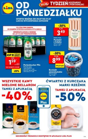 {loadposition linkLidl1} 'Od poniedziałku' - nowa gazetka promocyjna sieci sklepów Lidl. Polecane promocje z gazetki sklepów Lidl: Perlenbacher Pils 18x500 ml - 28,62 zł. Parówki z indyka Pikok Pure 200 g - 3,49 zł. Borówki amerykańskie 500…