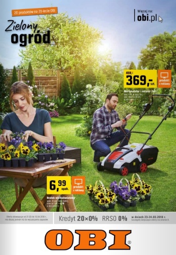 {loadposition linkObi} 'Zrobisz to z Obi. Czas na otwarcie sezonu ogrodowego!' - nowa gazetka promocyjna sieci marketów Obi. Polecane promocje z gazetki Obi: Wertykulator i areator elektryczny 1500 W - 379 zł. Bratek wielokwiatowy 10 sztuk - 7,99 zł.…