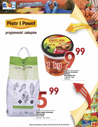Nowa gazetka promocyjna sieci sklepów Piotr i Paweł. Polecane promocje z gazetki Piotr i Paweł: Brykiet węgla drzewnego 2,5 kg - 5,99 zł. Szynka meksykańska Country Grill 1 kg - 17,99 zł. Pikantne skrzydełka grillowe Brazylijskie Lato 1…
