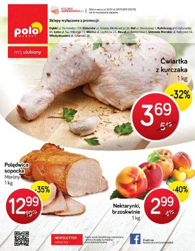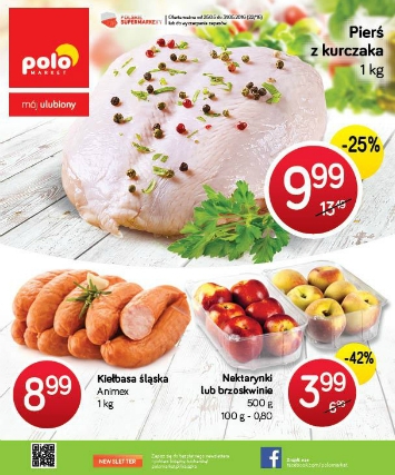 {loadposition linkPoloMarket} Nowa gazetka promocyjna Polo Market. Polecane promocje z gazetki Polo Market: Pierś z kurczaka 1 kg - 9,99 zł. Kiełbasa śląska Animex 1 kg - 8,99 zł. Nektarynki lub brzoskwinie 500 g - 3,99 zł. Oferta…