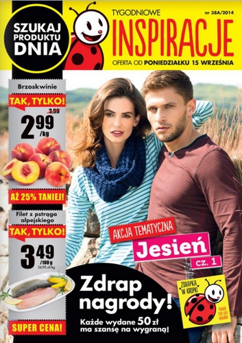 {loadposition linkBiedronka} Nowa gazetka promocyjna sieci handlowej Biedronka - "Inspiracje tygodniowe". Polecane promocje z gazetki sieci Biedronka: Brzoskwinie 1 kg - 2,99 zł. Filet z pstrąga alpejskiego 100 g - 3,49 zł. Komplet pościeli niemowlęcej - 39,99 zł. …
