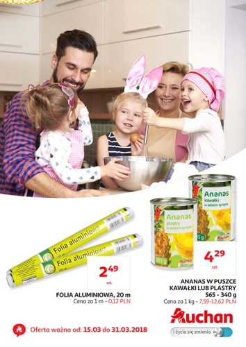 {loadposition linkAuchan} Nowa gazetka promocyjna sieci marketów Auchan. Polecane promocje z gazetki Auchan: Folia aluminiowa 20 m - 2,49 zł. Ananas w puszce 560/340 g - 4,29 zł. Budyń Winiary różne rodzaje - 0,85 zł. Zakupy w…