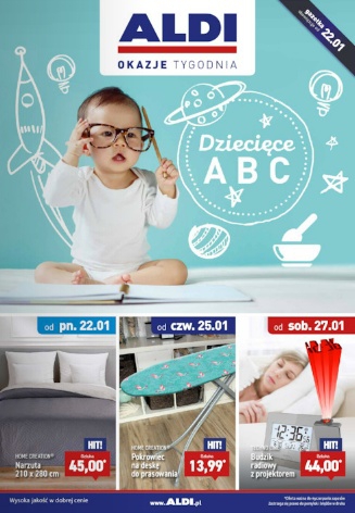 {loadposition linkAldi} Nowa gazetka promocyjna Aldi - "Dziecięce ABC". Polecane promocje z gazetki Aldi: Narzuta Home Creation 210x280 cm - 45 zł. Pokrowiec na deskę do prasowania Home Creation - 13,99 zł. Budzik radiowy z projektorem Techno Line -…