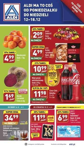 {loadposition linkAldi2} 'Coś na święta jak z bajki za mniej niż myślisz' - nowa gazetka promocyjna sieci sklepów Aldi. Polecane promocje z gazetki Aldi: Coca-Cola 2x2 L - 13,98 zł. Buraki czerwone 1 kg - 1,49 zł. Kawa mielona…