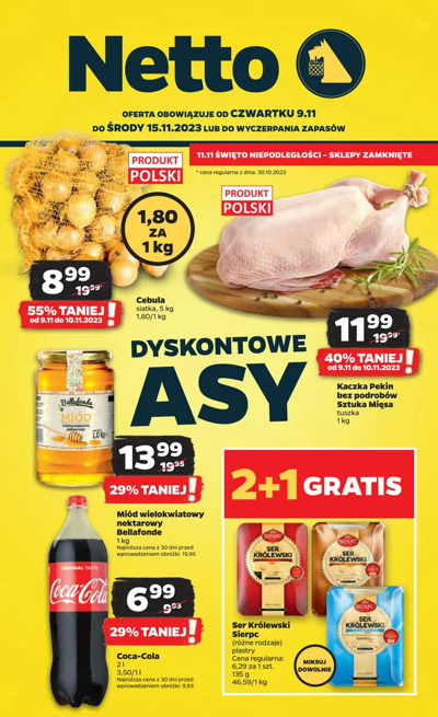 {loadposition linkNetto} 'Dyskontowe asy' - nowa gazetka promocyjna sieci sklepów Netto. Polecane promocje z gazetki Netto: Cebula 5 kg - 9,95 zł. Karkówka wieprzowa 1 kg - 13,99 zł*. Olej Kujawski - 10,99 zł*. * - cena obowiązuje…