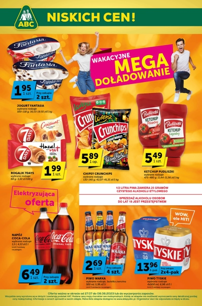 {loadposition linkABC} 'Wakacyjne mega doładowanie' - nowa gazetka promocyjna sieci sklepów ABC. Polecane promocje z gazetki ABC: Rogalik 7 Days 60 g - 1,99 zł*. Chipsy Crunchips 130 g - 5,89 zł. Ketchup Pudliszki 480 g - 5,49 zł.…