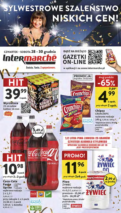 'Sylwestrowe szaleństwo niskich cen!' - nowa gazetka promocyjna sieci sklepów Intermarche Polecane promocje z gazetki Intermarche: Wyrzutnia Night Thorn 25 strzałów - 39,99 zł. Chipsy Crunchips 140 g - 4,99 zł*. Coca-Cola 2x1,5 L - 10,98 zł*. *…
