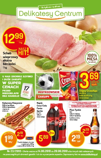 {loadposition linkDelikatesyCentrum} 'U nas zrobisz szybko i duże zakupy w super cenach przed niedzielami bez handlu!' - nowa gazetka promocyjna Delikatesów Centrum. Polecane promocje z gazetki Delikatesów Centrum: Schab wieprzowy ekstra bez kości 1 kg - 12,99 zł.…