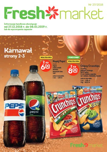 {loadposition linkFreshmarket} 'Karnawał' - nowa gazetka promocyjna sieci sklepów Freshmarket. Polecane promocje z gazetki Freshmarket: Napój Pepsi 2x1 L - 6 zł. Chipsy Crunchips 2x140 g - 8 zł. Napój Tymbark 2 L - 3,99 zł. …