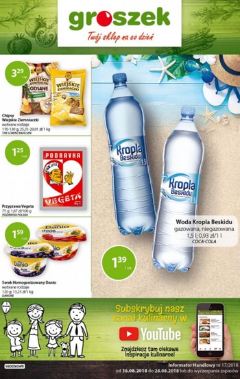{loadposition linkGroszek} Nowa gazetka promocyjna sieci sklepów Groszek. Polecane promocje z gazetki Groszek: Woda Kropla Beskidu 1,5 L - 1,39 zł. Chipsy Wiejskie Ziemniaczki 110 g - 3,29 zł. Przyprawa Vegeta 75 g - 1,25 zł.…