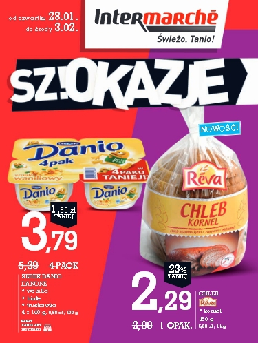 {loadposition linkIntermarche} Nowa gazetka promocyjna sieci handlowej Intermarche - "Sz!okazje". Polecane promocje z gazetki Intermarche: Serek Danio Danone 4x140 g - 3,79 zł. Chleb Kornel 450 g - 2,29 zł. Piwo Tyskie 500 ml - 1,99 zł. Oferta…