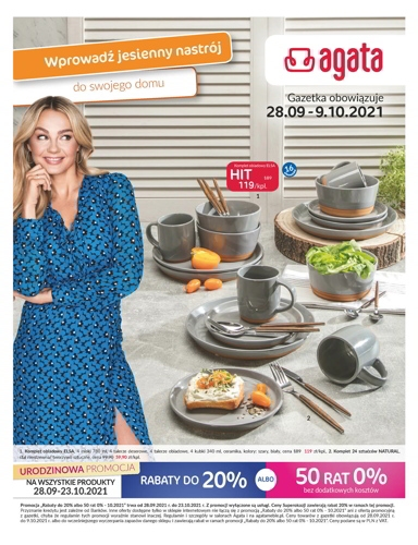 {loadposition linkAgata} 'Wprowadź jesienny nastrój do swojego domu' - nowa gazetka promocyjna sieci salonów Agata. Polecane promocje z gazetki Agata: Komplet obiadowy Elsa - 119 zł. Komplet sztućców Natural 24 elementy - 59,90 zł. Chlebak - 59,90 zł. …
