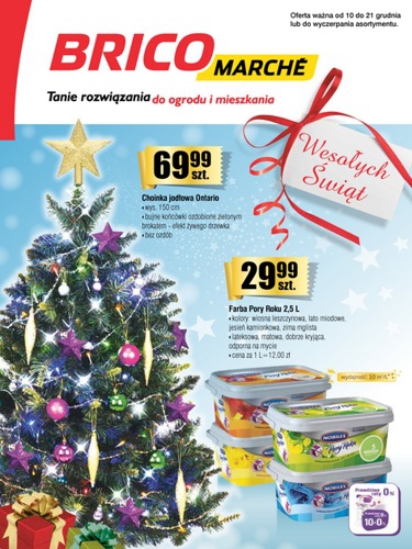 {loadposition linkBricomarche} Nowa gazetka promocyjna Bricomarche - "Wesołych Świąt". Polecane promocje z gazetki Bricomarche: Drzewko dekoracyjne LED 180 cm - 79,99 zł. Poisencja 4-6 pędowa - 9,89 zł. Choinka jodłowa Ontario 150 cm - 109 zł. Oferta ważna…