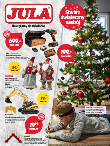 {loadposition linkJula} Nowa gazetka promocyjna sieci handlowej Jula - "Stwórz świąteczny nastrój". Polecane promocje z gazetki Jula: Choinka LED - 199 zł. Świecznik adwentowy LED Anslut - 19,99 zł. Figurka do dekoracji Mikołaj Menuett - 139 zł.…