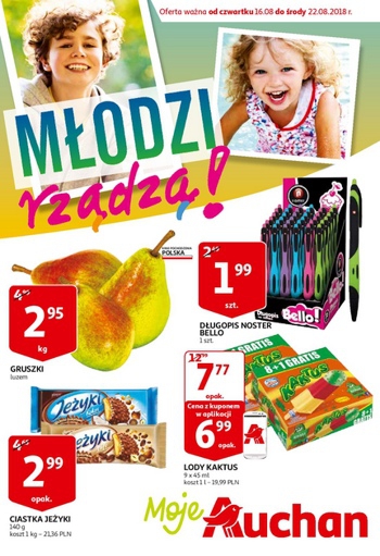 {loadposition linkAuchan} 'Młodzi rządzą! cz. 2' - nowa gazetka promocyjna sieci marketów Auchan. Polecane promocje z gazetki Auchan: Gruszki 1 kg - 2,95 zł. Długopis Noster Bello 1 sztuka - 1,99 zł. Ciastka Jeżyki 140 g - 2,99…