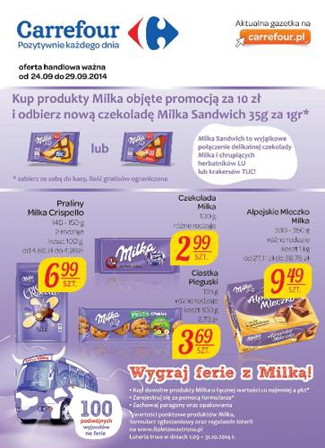 {loadposition linkCarrefour} Nowa gazetka promocyjna sieci handlowej Carrefour - "Słodki koniec lata". Polecane promocje z gazetki Carrefour: Ciastka Pieguski 135 g - 3,69 zł. Czekolada Milka 100 g - 2,99 zł. Kawa rozpuszczalna Jacobs Cronat Gold 200 g -…