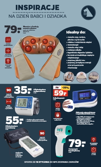 'Inspiracje na Dzień Babci i Dziadka' - nowa gazetka promocyjna sieci sklepów Netto. Polecane promocje z gazetki Netto: Masażer z funkcją masażu shiatsu - 79 zł. Ciśnieniomierz nadgarstkowy Esperanza - 35 zł. Pulsoksymetr - 59 zł. Oferta…