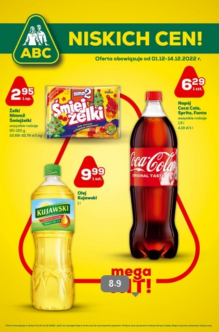 {loadposition linkABC} 'ABC niskich cen!' - nowa gazetka promocyjna sieci sklepów ABC. Polecane promocje z gazetki ABC: Żelki Śmiejżelki Nimm 2 wszystkie rodzaje - 2,95 zł. Olej Kujawski 1 L - 9,99 zł. Coca-Cola, Fanta lub Sprite 1,5 L…