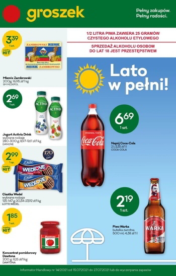 {loadposition linkGroszek} 'Czerwiec pełen emocji!' - nowa gazetka promocyjna sieci sklepów Groszek. Polecane promocje z gazetki Groszek: Coca-Cola 2 L - 6,69 zł. Piwo Warka 500 ml - 2,19 zł. Koncentrat pomidorowy Dawtona 200 g - 1,85 zł. …