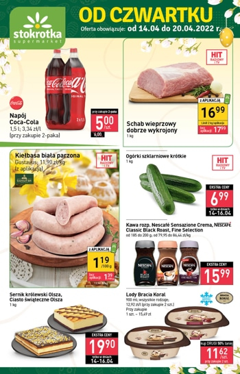 {loadposition linkStokrotka2} Nowa gazetka promocyjna sieci sklepów Stokrotka. Polecane promocje z gazetki Stokrotka: Napój Coca-Cola 2x1,5 L - 10 zł. Schab wieprzowy dobrze wykrojony 1 kg - 16,99 zł*. Ogórki szklarniowe krótkie 1 kg - 6,99 zł**. *…