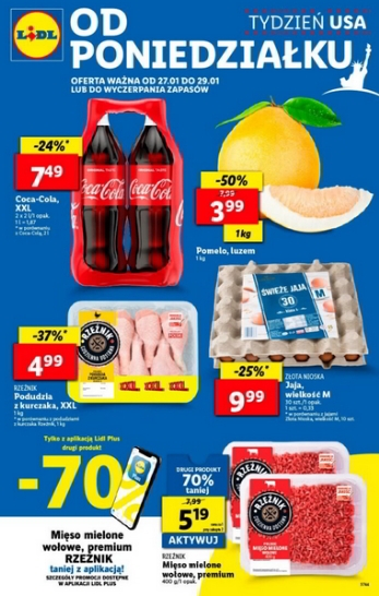 {loadposition linkLidl1} 'Od poniedziałlku Tydzień USA' - nowa gazetka promocyjna sieci sklepów Lidl. Polecane promocje z gazetki sklepów Lidl: Coca-Cola 2x2 L - 7,49 zł. Pomelo 1 kg - 3,99 zł. Podudzia z kurczaka Rzeźnik 1 kg -…