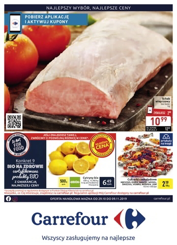 {loadposition linkCarrefour} Nowa gazetka promocyjna sieci marketów Carrefour. Polecane promocje z gazetki Carrefour: Schab wieprzowy bez kości 1 kg - 10,99 zł*. Cytryny BIO 500 g - 6,49 zł. Cukierki czekoladowe 100 g - 2,19 zł. …