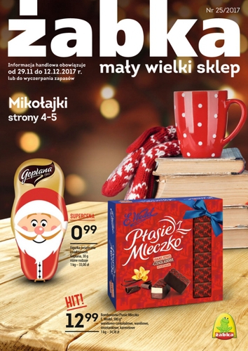 Nowa gazetka promocyjna sieci sklepów Żabka. Polecane promocje z gazetki Żabka: Figurka świąteczna z nadzieniem Gopalna 30 g - 0,99 zł. Czekolada Milka Oreo 300 g - 8,99 zł. Cukierki Michałki Klasyczne Wawel 280 g - 5,99 zł. …