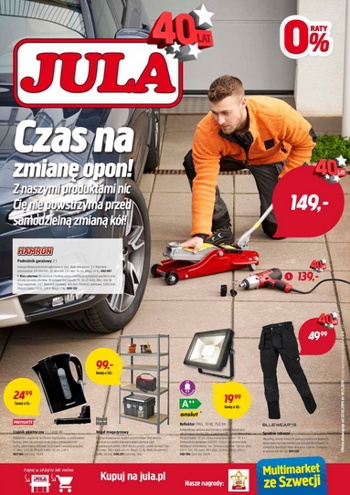 {loadposition linkJula} 'Czas na zmianę opon! Z naszymi produktami nic Cię nie powstrzyma przed samodzielną zmianą kół!' - nowa gazetka promocyjna sieci handlowej Jula. Polecane promocje z gazetki Jula: Podnośnik garażowy Hamron 2 t - 149 zł. Czajnik…
