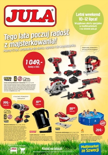 {loadposition linkJula} 'Tego lata poczuj radość z majsterkowania! Mamy 15 tys. artykułów do domu, ogrodu i do wypoczynku' - nowa gazetka promocyjna sieci handlowej Jula. Polecane promocje z gazetki Jula: Zestaw startowy Meec Tools Multiseries 9 elementów - 1049…