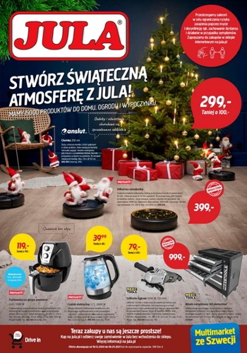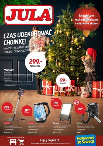 {loadposition linkJula3} 'Stwórz świąteczną atmosferę z Julą! Mamy 15 tys. artykułów do domu, ogrodu i wypoczynku' - nowa gazetka promocyjna sieci handlowej Jula. Polecane promocje z gazetki Jula: Choinka sztuczna Anslut - 299 zł. Odkurzacz samojezdny Menuett - 399…