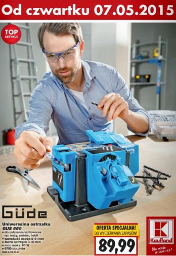 {loadposition linkKaufland} Nowa gazetka promocyjna marketu Kaufland - "TOP-Artykuł". Polecane promocje z gazetki Kaufland: Uniwersalna ostrzałka GUS 650 - 89,99 zł. Pistolet do klejenia na gorąco Einhell - 19,99 zł. Czapka z daszkiem - 6,99 zł. Oferta ważna…