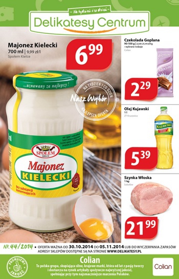 {loadposition linkDelikatesyCentrum} Nowa gazetka promocyjna Delikatesów Centrum. Polecane promocje z gazetki Delikatesów Centrum: Majonez Kielecki 700 ml - 6,99 zł. Czekolada Goplana 100 g - 2,29 zł. Olej Kujawski 1 L - 5,39 zł. Oferta ważna od 30.10…