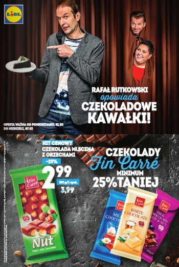 {loadposition linkLidl} Nowa gazetka promocyjna Lidl - "Rafał Rutkowski opowiada czekoladowe kawałki!". Polecane promocje z gazetki Lidl: Czekolada mleczna z orzechami Fin Care 100 g - 2,99 zł. Ketchup Mikadek 450 g - 3,99 zł. Mleko następne Bebiprima 500…
