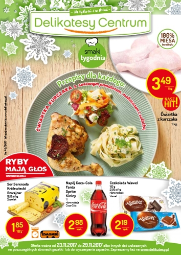 {loadposition linkDelikatesyCentrum} Nowa gazetka promocyjna Delikatesów Centrum. Polecane promocje z gazetki Delikatesów Centrum: Ćwiartka z kurczaka 1 kg - 3,49 zł. Ser Serenada Królewiecki Szwajcar Spomlek 100 g - 1,85 zł. Czekolada Wawel 100 g - 2,19…