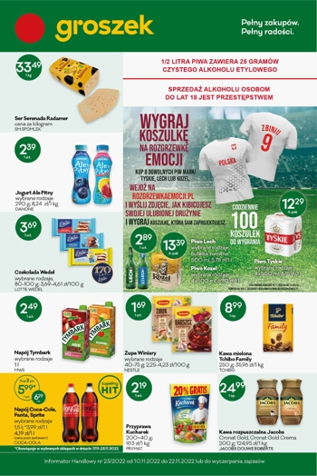 {loadposition linkGroszek} Nowa gazetka promocyjna sieci sklepów Groszek. Polecane promocje z gazetki Groszek: Ser Serenada Radamer 1 kg - 33,49 zł. Czekolada Wedel 80-100 g - 3,69 zł. Napój Tymbark 1 L - 2,49 zł. Oferta ważna…