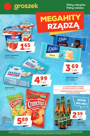 {loadposition linkGroszek} Nowa gazetka promocyjna sieci sklepów Groszek. Polecane promocje z gazetki Groszek: Jogurt Jogobella Zott 150 g - 1,65 zł. Czekolada Wedel 100 g - 3,69 zł. Chipsy Crunchips 140 g - 5,69 zł. Oferta ważna…