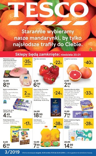 Nowa gazetka promocyjna sieci sklepów Tesco. Polecane promocje z gazetki Tesco: Papryka czerwona 1 kg - 6,99 zł. Czekolada Milka 300 g - 7,99 zł. Płatki Nestle Kids 500 g - 6,99 zł. Oferta ważna…