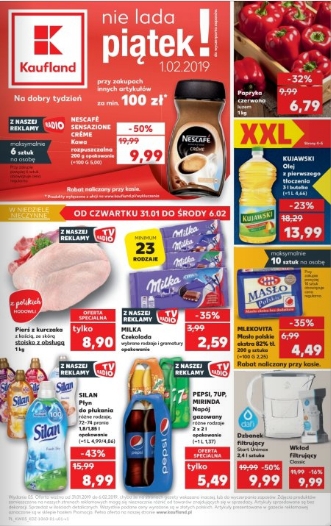 {loadposition linkKaufland} Nowa gazetka promocyjna sieci marketów Kaufland. Polecane promocje z gazetki Kaufland: Pierś z kurczaka z kością i ze skórą 1 kg - 8,90 zł. Czekolada Milka wybrane rodzaje i gramatury - 2,59 zł. Płyn do płukania Silan…