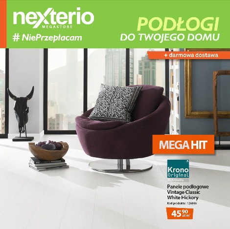 Nowa gazetka promocyjna Nexterio - "Podłogi do Twojego domu". Polecane promocje z gazetki Nexterio: Panele podłogowe Vintage Classic White Hickory m² - 45,90 zł. Deska Barlinecka dąb Coconut piccolo Smaki Życia m² - 179 zł. Dywan Lenasia -…