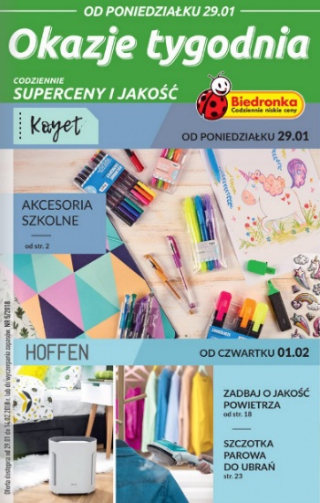 {loadposition linkBiedronka} Nowa gazetka promocyjna sieci sklepów Biedronka - "Okazje tygodnia". Polecane promocje z gazetki sieci Biedronka: Papier Xero kolorowy A4 100 arkuszy - 9,99 zł. Długopis Round Stic - 3,99 zł. Długopis Frixion - 8,99 zł. …