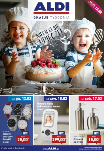 {loadposition linkAldi} Nowa gazetka promocyjna Aldi - "Niech ci się upiecze!". Polecane promocje z gazetki Aldi: Zegarek kwarcowy damski lub męski Krontaler - 25 zł. Niania elektroniczna z kamerą video Motorola - 299 zł. Dozownik na mydło Home Creation…