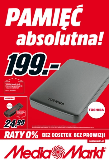 {loadposition linkMediaMarkt} Nowa gazetka promocyjna Media Markt - "Pamięć absolutna!". Polecane promocje z gazetki Media Markt: Dysk zewnętrzny TOSHIBA Canvio Basics 750 GB - 199 zł. Pamięć SANDISK Cruzer Blade 16GB - 24,99 zł. Klawiatura bezprzewodowa LOGITECH Wireless Touch…