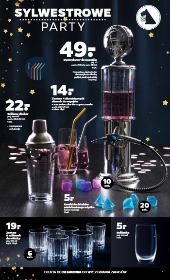 'Sylwestrowe party' - nowa gazetka promocyjna sieci sklepów Netto. Polecane promocje z gazetki Netto: Dystrybutor do napojów 1 L - 49 zł. Szklany shaker 450 ml - 22 zł. Kostki do drinków wielokrotnego użytku 1 komplet - 5 zł.…
