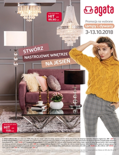 {loadposition linkAgata} 'Promocje na wybrane lampy i dywany' - nowa gazetka promocyjna sieci salonów Agata z artykułami wyposażenia wnętrz. Polecane promocje z gazetki Agata: Lampa wisząca Milano - 99,90 zł. Dywan Zola 120x160 cm - 159 zł. Żarówka…