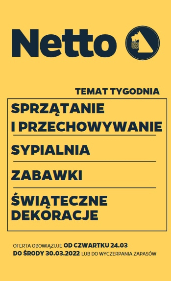 {loadposition linkNetto2} 'Temat tygodnia' - nowa gazetka promocyjna sieci sklepów Netto. Polecane promocje z gazetki Netto: Suszarka na ubrania - 65 zł. Dywanik łazienkowy - 19 zł. Doniczka - 19 zł. Oferta ważna od czwartku 24.03 do…