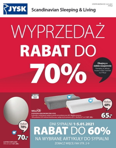 'Wyprzedaż' - nowa gazetka promocyjna sieci sklepów JYSK. Polecane promocje z gazetki Jysk: Rabat 20-70% na wszystkie lampy i oświetlenie dekoracyjne. Rabat 20-70% na wybrane dywany. Rabat 20-40% na wszystkie szafy. Oferta ważna od piątku 25.12 do…