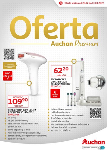 {loadposition linkAuchan} 'Oferta Auchan Premium' - nowa gazetka promocyjna sieci marketów Auchan. Polecane promocje z gazetki Auchan: Depilator Philips Lumea Advanced SC 1994/00 - 1099 zł. Szczoteczka Oral-B Braun Genius 9200 3DW - 622 zł. Ekspres do kawy Bosch…