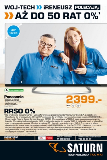{loadposition linkMediaMarkt} 'Aż 50 rat 0%' - nowa gazetka promocyjna Saturn. Polecane promocje z gazetki Saturn: Telewizor 4K Ultra HD 49 cali PANASONIC TX-49EX633E - 2399 zł. Głośnik JBL Boombox - 1999 zł. Elektryczna deskorolka SKYMASTER Wheels 6,5 Dual…