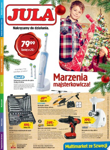 {loadposition linkJula} Nowa gazetka promocyjna sieci handlowej Jula - "Marzenia majsterkowicza!". Polecane promocje z gazetki Jula: Elektryczna szczoteczka do zębów Oral-B Vitality 3D White - 79,99 zł. Zestaw kluczy nasadowych 80 części - 199 zł. Helikopter zdalnie sterowany drogą…