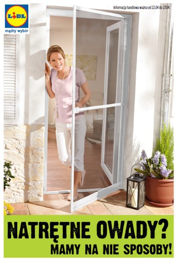 {loadposition linkLidl} Nowa gazetka promocyjna Lidl - "Natrętne owady? Mamy na nie sposoby!". Polecane promocje z gazetki Lidl: Moskitiera okienna z ramą aluminiową - 59 zł. Ochronna zasłona lamelowa na drzwi - 34,99 zł. Lampa owadobójcza - 39,99 zł.…